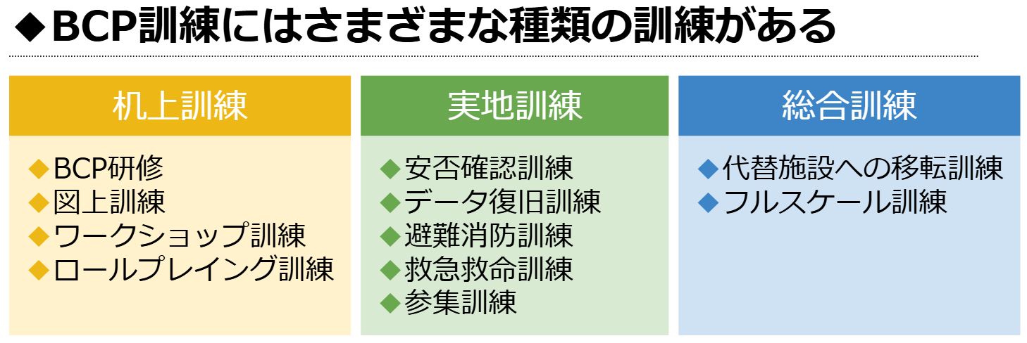 ・BCP(事業継続計画)に沿って行う訓練のこと
