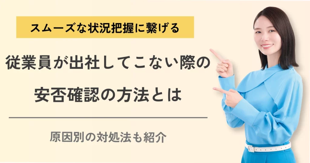そこでこの記事では、従業員が出社してこないときの安否確認方法を紹介します。安否確認後の対処法についても紹介しているので、あわせて参考にしてください。